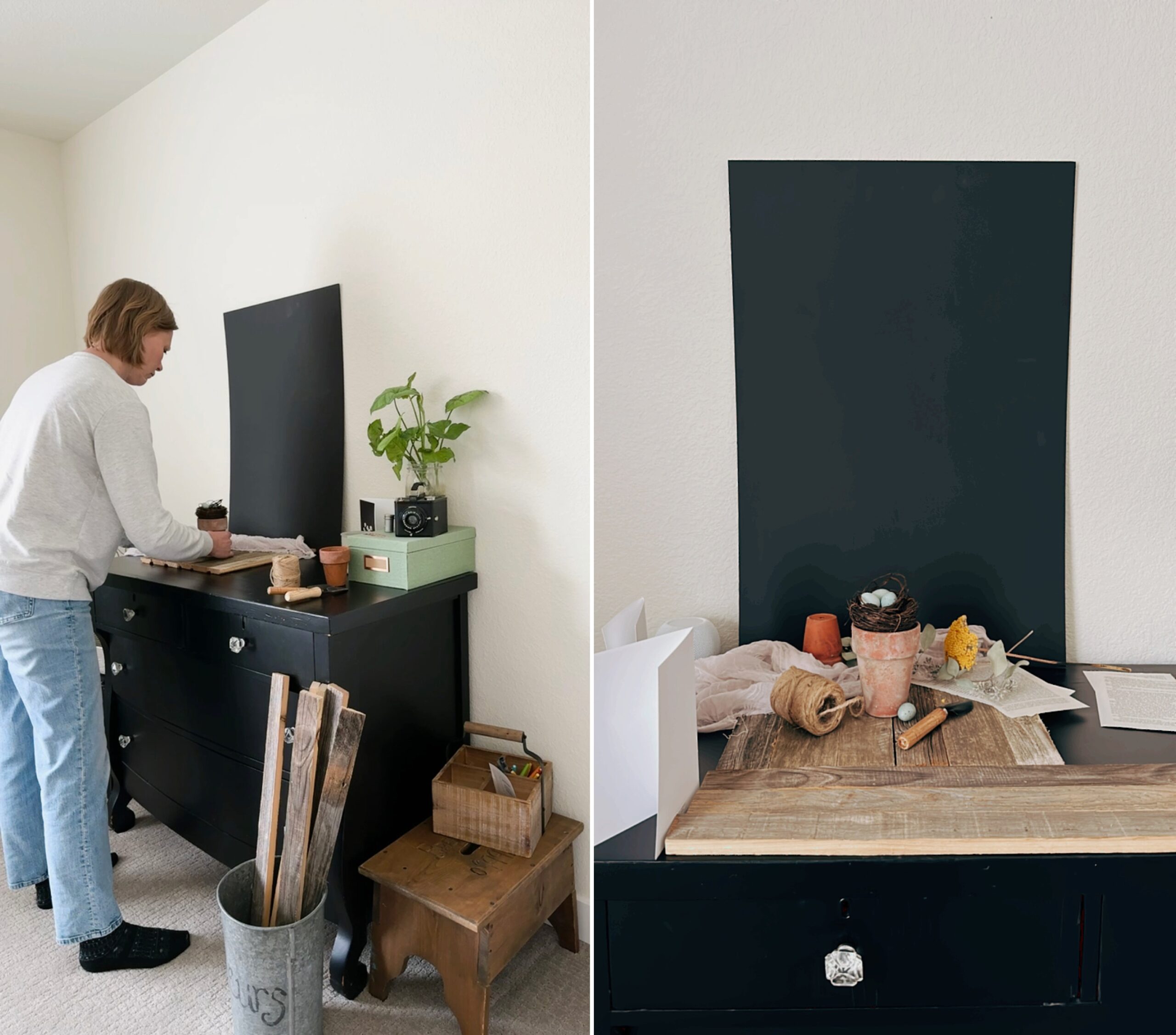Easter often feels like Spring has arrived. The sun is out, the temps are warmer, and there’s more green growth in the garden. There’s an excitement for what is to come … summer. Using those thoughts as inspiration plus wanting to do a darker moody still life, these images were created.